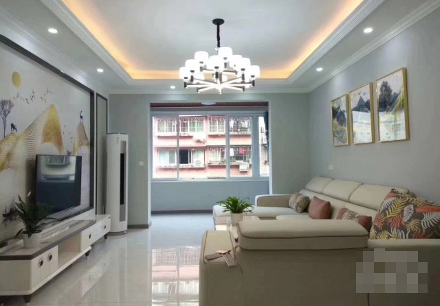 龙马大道旁丹桂苑小区,黄金三楼,127平米,4房2厅2卫,现代风格精装修,家俱电器全齐