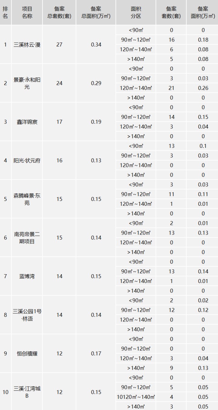 根据公告显示,2025年8月泸州市主城区新建商品住房销售前10的项目,合计备案166套,备案面积1.86万平方米,前3名分别是三溪林云·漫、景豪·永和阳光、鑫洋锦宸。来看看本月哪10个楼盘卖的好。
