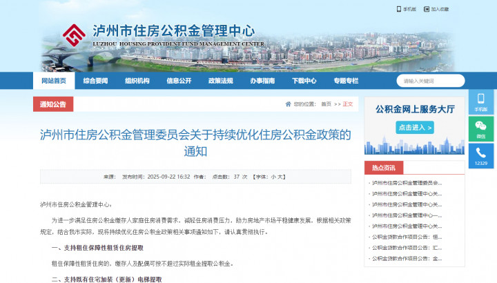 2025年9月22日,泸州市住房公积金管理委员会发布了关于持续优化住房公积金政策的通知,具体内容如下: