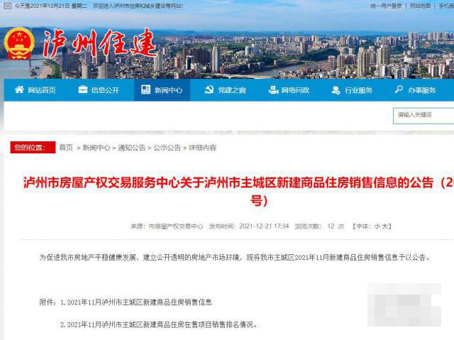 为促进房地产平稳健康发展,建立公开透明的房地产市场环境,2021年12月21日泸州市房屋产权交易服务中心发布了关于泸州市主城区新建商品住房销售信息的公告(2021第11号)。