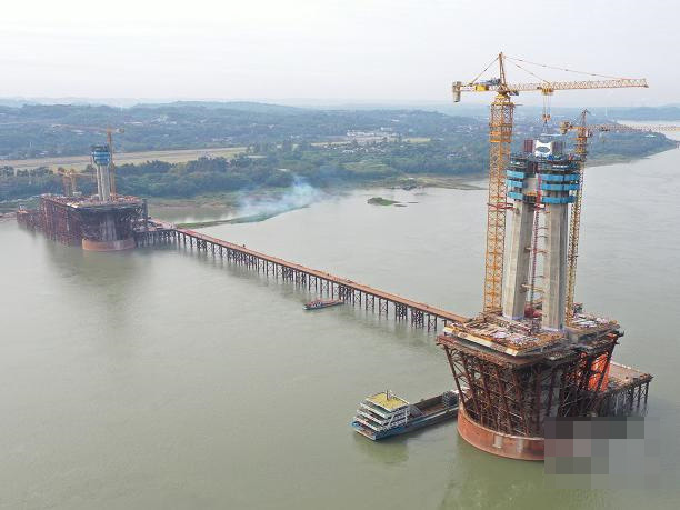 泸州长江六桥中心主塔正式进入上塔柱钢结构施工阶段