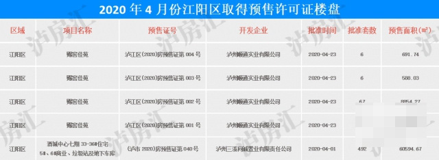 其中江阳区共有2个楼盘获得预售许可证。共计房源638套。