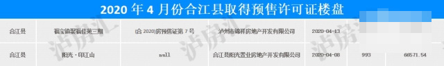 从数据中可以看到,4月份泸州主城区只有一个楼盘取得了商品房预售许可证,对比上月数据明显回落。