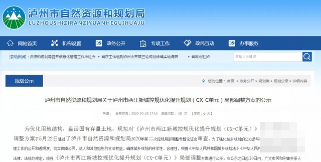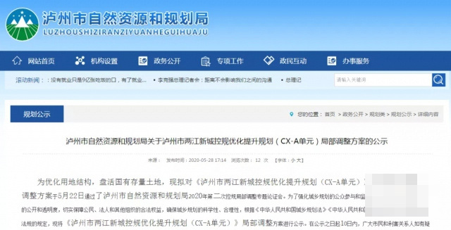 为优化用地结构,盘活国有存量土地,5月28日,泸州市自然和规划局发布了关于泸州市两江新城控规优化提升规划(cx-a单元)和(cx-c单元)局部调整方案的公示。