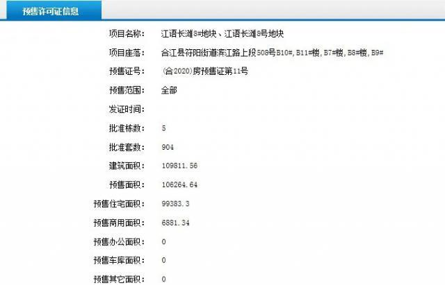 其中江语长滩8#地块、江语长滩8号地块项目获批房源904套。