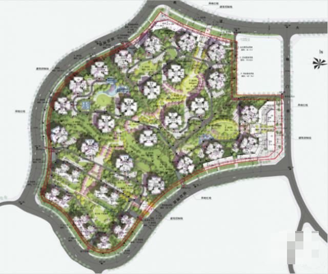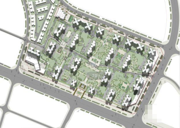 规划设计由23栋高层住宅及1栋多层商业、1栋幼儿园和部分临街商业等组成。