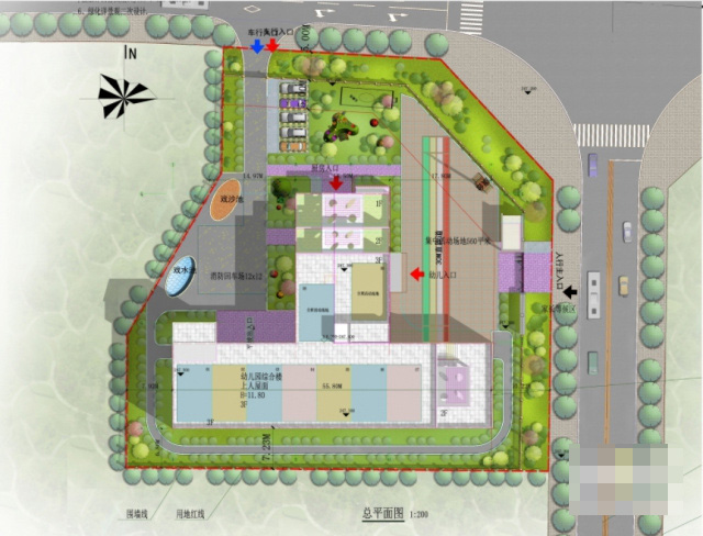 项目容积率0.773,建筑密度28.83%,绿地率35%。办学规模为9个教学班,可容纳270名幼儿。