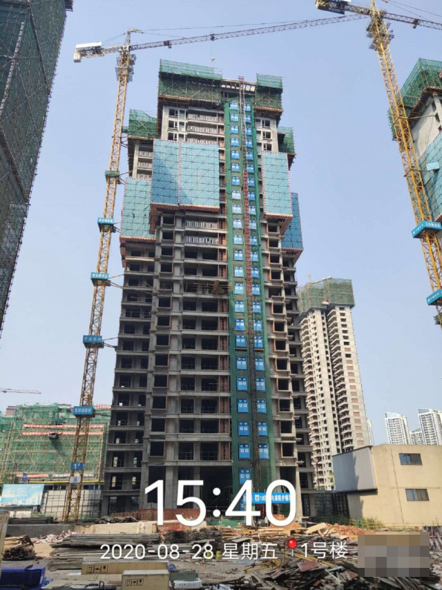 1号楼主体已封顶,砌体施工已完成,内墙抹灰完成至25层,外墙抹灰完成至19层,保温完成至20层。