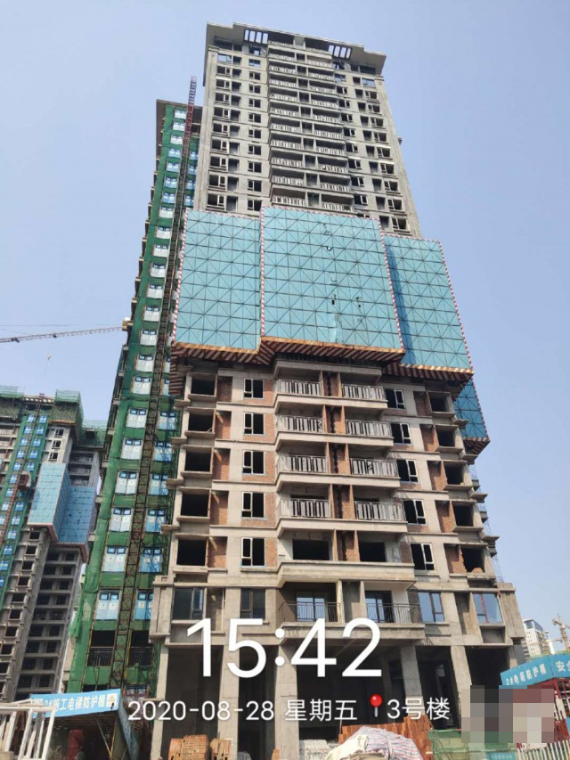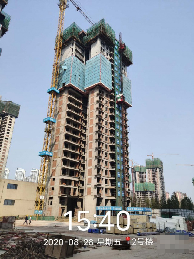 2号楼主体已封顶,砌体施工已完成,内墙抹灰完成至25层,外墙抹灰完成至19层,保温完成至20层。