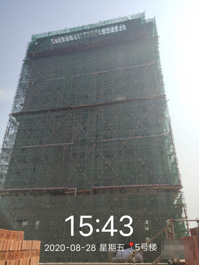5号楼主体已封顶,砌体施工至15层,外墙抹灰施工至8层。