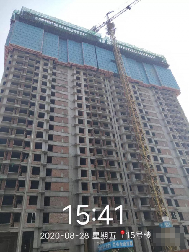 15号楼主体已封顶,砌体已完成,内墙抹灰完成至20层。