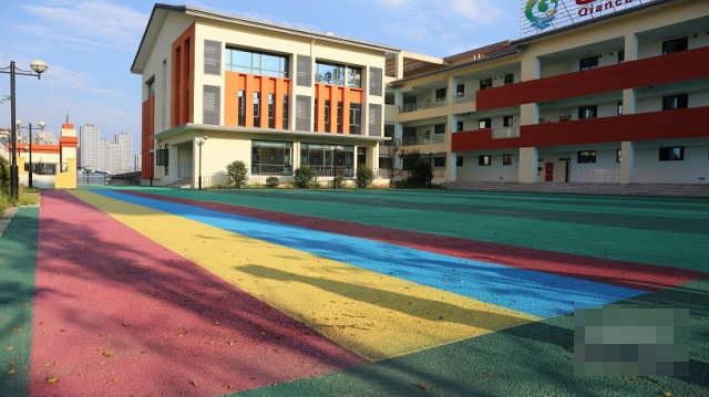 走进校园,最吸引眼球的就是教学楼门前的五颜六色的操场。“操场采用透水混凝土材质铺装而成。透水混凝土是由动物骨料、水泥和水拌制而成的一种多孔轻质混凝土,里面均匀分布着蜂窝状机构的孔穴,具有透气、透水和重量轻和高散热的特点。”据泸州市住房和城乡建设局城建科工作人员王梦华介绍,降雨时,雨水通过透水混凝土铺装的空隙渗水, 透水速度能达到31-52升/米/小时,这基本上就意味着雨水下降到地表之后会直接被吸收到地下,保持地表的干燥,人走在地面,基本能达到不湿鞋。