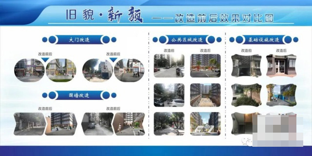 王友伦来到现场的时候,小广场里已经站满了人,尽管雨越下越大,依然挡不住大家的热情。广场一侧的公告栏里,小区大门、围墙、公共区域、基础设施等改造前后的效果图一览无余,王友伦仔细看了一下效果图,竖起了大拇指,“很好!我很满意!比改造之前亮堂多了!而且计划了两个休闲广场,对于我们老年人来说很实用!”