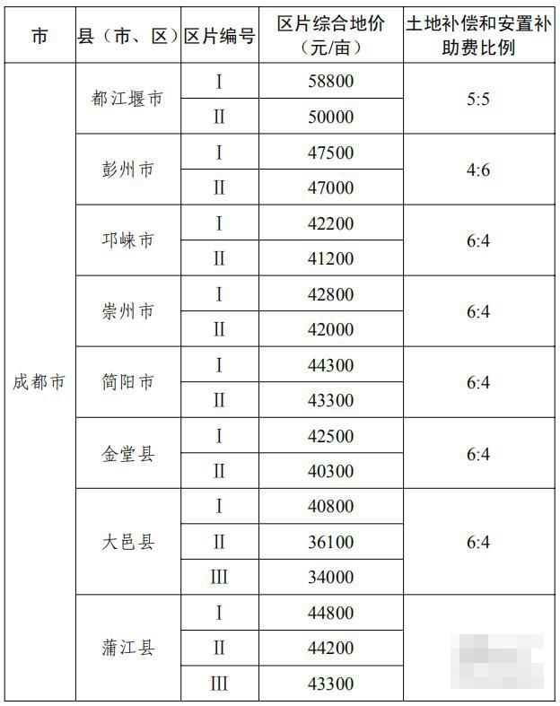 《批复》文件指出,征收农用地区片综合地价由土地补偿费和安置补助费组成。征收集体农用地以外的其他集体土地补偿标准,可根据《四川省〈土地管理法〉实施办法》相关规定结合实际制定,但不得低于征收农用地区片综合地价的0.5倍。大中型水利、水电工程建设征收土地的补偿标准,按法律法规有关规定执行。