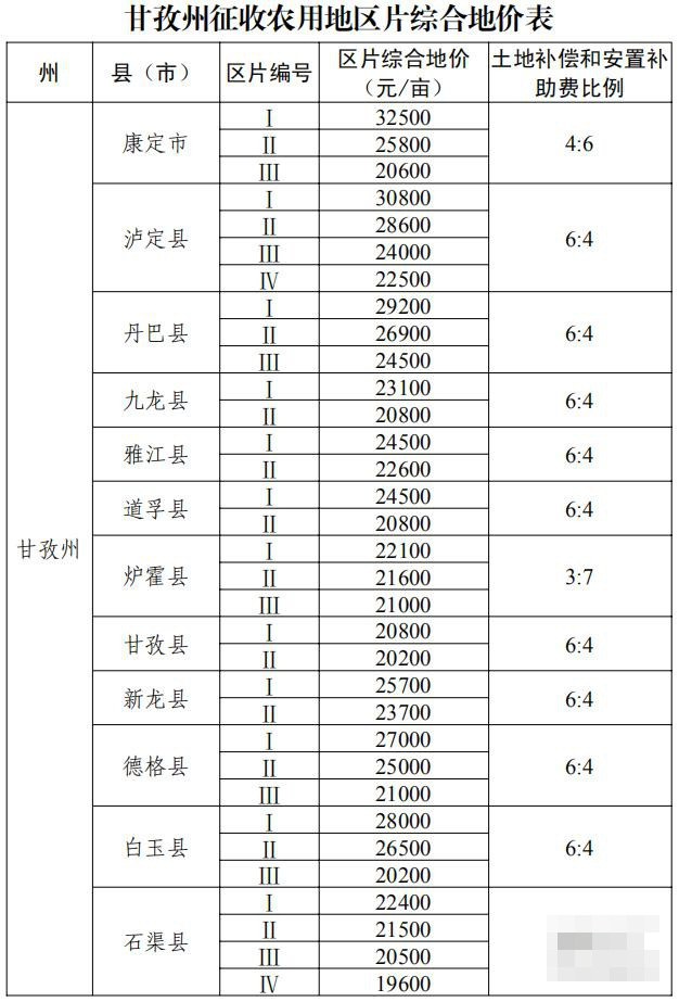 《批复》文件要求,各市(州)政府要组织所辖县(市、区)政府抓紧公布征收农用地区片综合地价,公布内容应包括区片综合地价标准、土地补偿费和安置补助费比例、实施时间、新旧征地补偿标准衔接措施等,同时要加强政策解读宣传,方便社会公众查询,充分保障被征地农民的知情权、参与权和监督权。