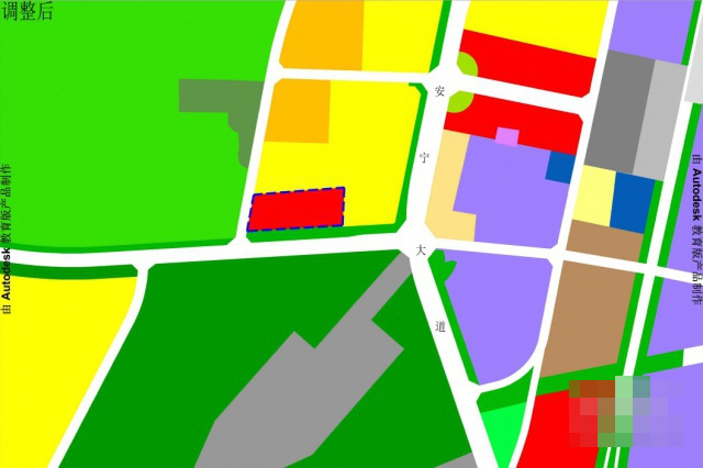 《泸州市城北新城控制性详细规划》九狮—安宁连接线北侧,面积约1.94公顷。调整前,用地性质为RB商住混合用地,容积率≤3.5,建筑密度≤25%,建筑高度≤60米,绿地率≥25%。
