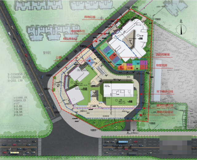 根据规划设计方案将修建农贸超市、友邻空间(办公)、商业、办公、幼儿园及地下停车位等。其中,农贸超市面积为3005.56㎡;友邻空间(办公)面积为3638.02㎡;商业面积为4213.24㎡;办公面积为10894.24㎡;幼儿园面积为4552.65㎡。