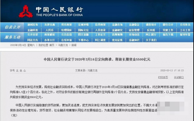 3月13日,为支持实体经济发展,降低社会融资实际成本,中国人民银行决定于2020年3月16日实施普惠金融定向降准,对达到考核标准的银行定向降准0.5至1个百分点。