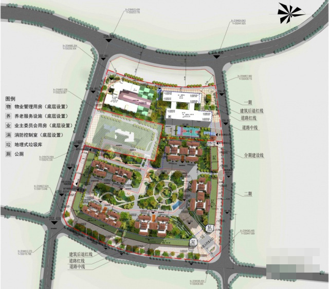 根据规划设计方案,项目将修建住宅、商业、幼儿园及友邻中心、物管用房、业委员会用房、养老服务用房、全民健身活动场地等配套设施。其中住宅建筑面积为132392.02㎡;商业建筑面积为8250.77㎡;幼儿园建筑面积为4661.38㎡;友邻中心(含地下商业)建筑面积为16914.63㎡;物业用房面积为461.26㎡;业主委员会用房面积为90.40㎡;养老服务设施面积为375.73㎡;全民健身活动场所面积为328.15㎡。