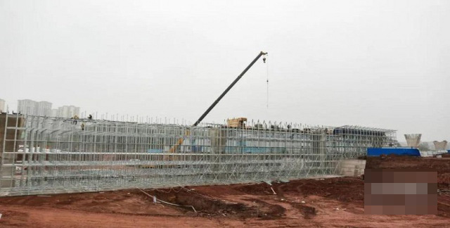A匝道桩基下部结构施工已经完成,已进入上部箱梁结构施工,工人正在进行支架搭设,为箱梁混凝土浇筑作准备。据项目部现场负责人陈劲烽介绍,泸州高铁站配套市政道路工程于今年8月开工,目前路基土石方已完成总量的90%以上,路基形成度已达到60%,正在实施雨污管网施工及箱梁结构施工。另外,市政配套道路工程中的A匝道,是进入高铁站的主要通道,也是连接高铁站落客平台的控制性工程。