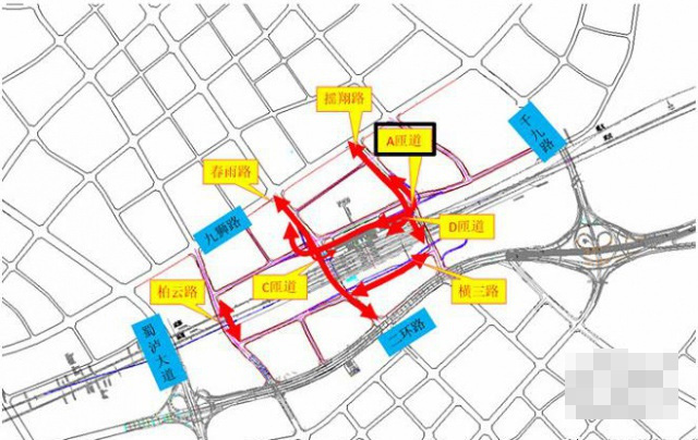工程竣工投用后,旅客可从摇翔路或春雨路经车站互通上A匝道,进入北广场落客平台;列车到站后,旅客下车将由南广场出站,然后经广场外横三路直接上摇翔路或春雨路进出城。