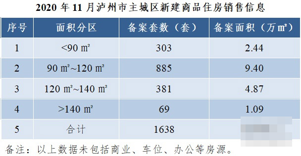 根据2020年11月泸州市主城区新建商品住房销售信息显示: