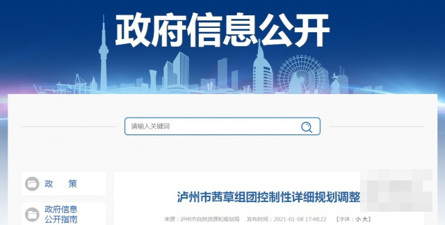 2021年1月8日,泸州市自然资源和规划局发布了关于泸州市茜草组团控制性详细规划调整。