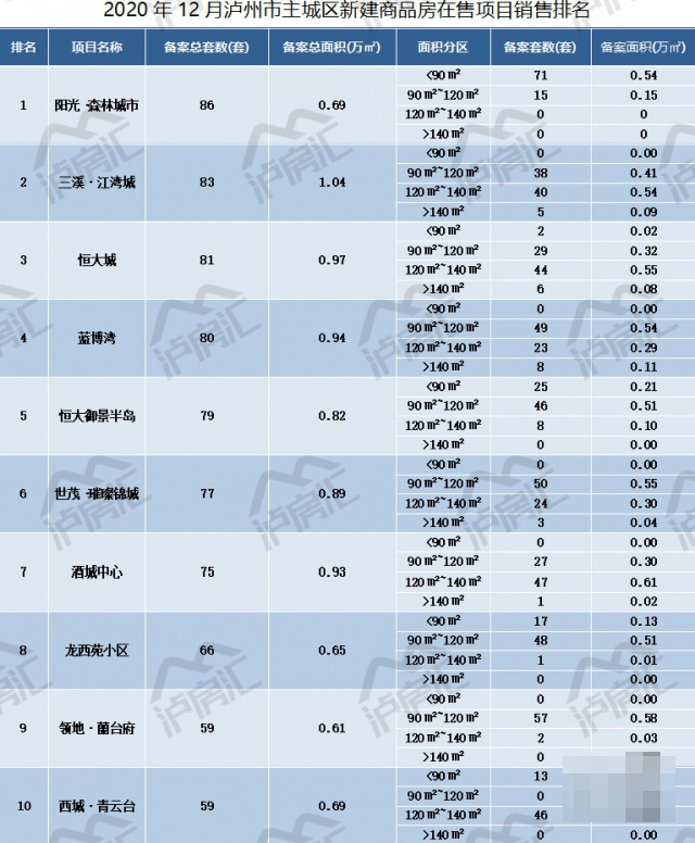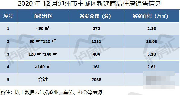 根据2020年12月泸州市主城区新建商品住房销售信息显示: