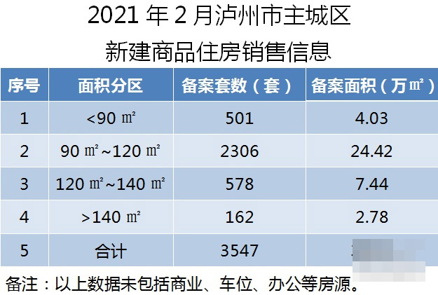 根据2021年2月泸州市主城区新建商品住房销售信息显示: