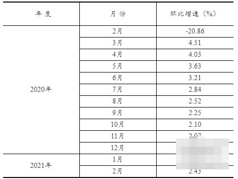 根据季节调整模型自动修正程序,对2020年2月份以来的固定资产投资(不含农户)环比增速进行修订。修订结果及2021年2月份环比数据如下: