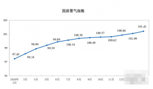 2月份,房地产开发景气指数(简称“国房景气指数”)为101.41。