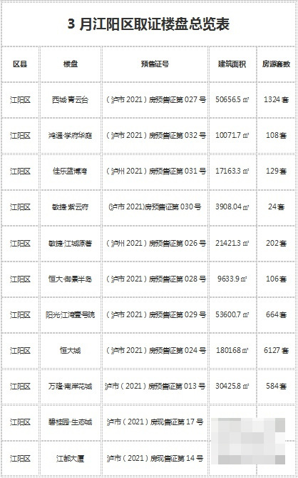 截至2021年3月31日,据泸州市住房和城乡建设局官网显示,3月份,泸州市辖区共有14个楼盘取证,共计取证15张。