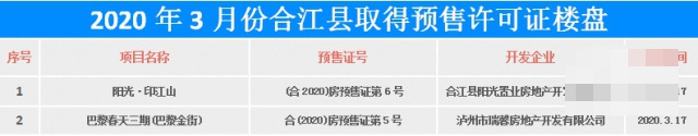 ▲2020年3月份合江县取得预售许可证楼盘
