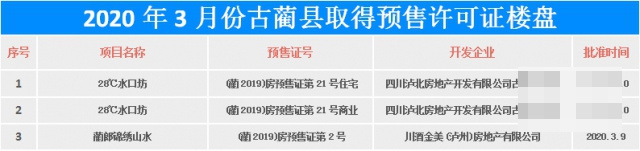 ▲2020年3月份古蔺县取得预售许可证楼盘