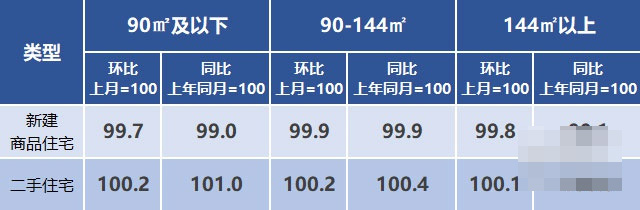90㎡及以下环比下降0.3%,同比下降1%;90-144㎡环比下降0.1%,同比下降0.1%;144㎡以上环比下降0.2%,同比下降0.9%;
