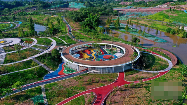 据市建管二中心负责人介绍,龙涧溪公园打造具有三大亮点。亮点一是集生态修复公园与湿地公园于一体。作为高铁配套公园,具有集散和游憩等功能,该公园道路面层采用彩色透水混凝土来铺设,以满足绿道骑行和人行交通为主,色彩丰富跳跃。亮点二是非遗文化特色明显,结合“马潭火龙”文化,公园内蜿蜒穿梭的溪流和道路正好突出了“游龙”的动感形态,突出“龙”元素的特色和底蕴。亮点三是突出“山水泸州”理念,整个公园拥有25万平方米的绿化面积,7万多平方米的水体(河流)。