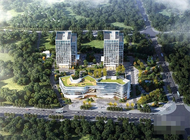 根据规划设计方案,项目由2栋12F商业/办公楼、1栋7F商业/办公楼及配套用房构成,容积率小于2.0,建筑密度小于35%,绿地率大于30%,机动车位大于500辆。