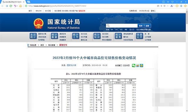 附:《国家统计局城市司首席统计师绳国庆解读2022年2月份商品住宅销售价格变动情况统计数据》