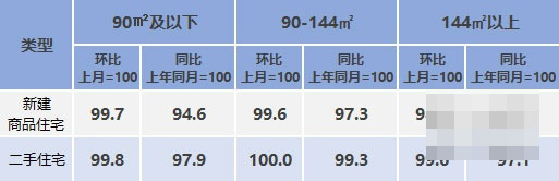 90㎡及以下环比上月下降0.2%,同比上年同月下降2.1%;90-144㎡环比上月保持不变,同比上年同月下降0.7%;144㎡以上环比上月下降0.4%,同比上年同月下降2.9%;