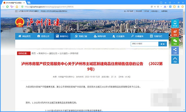 为促进房地产平稳健康发展,建立公开透明的房地产市场环境,泸州市房屋产权交易服务中心发布了关于泸州市主城区新建商品住房销售信息的公告 (2022第9号)。