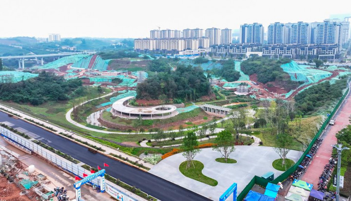 截至目前,公园现场施工已经过半,施工方正在加紧山体绿化、基础道路、停车场、运动场等基础设施的建设。