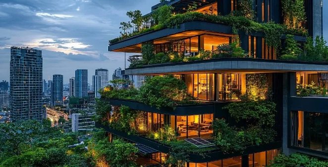立体生态住宅,是指每户拥有高度不小于两个自然层的户属空中花园为基本配置的住宅,主要有空中户属庭院住宅和空中共享园林住宅两种类型。空中户属庭院住宅,是指每套均具有户属空中花园的住宅。空中共享园林住宅,是指同时具有户属空中花园及空中共享平台的住宅。