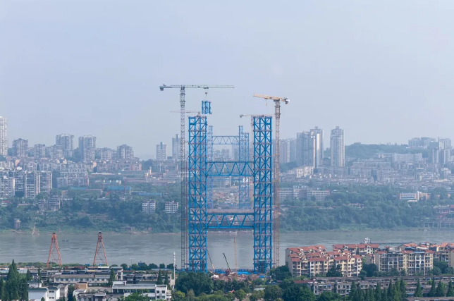 泸州长江五桥及连接线工程扣塔安装目前已接近尾声,为后续施工奠定了坚实基础。