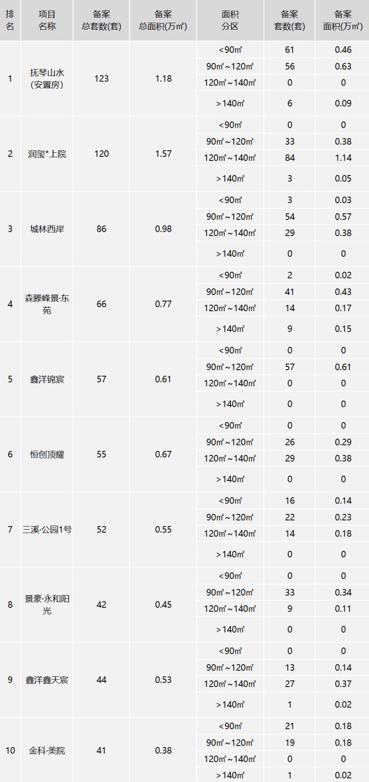 同时,公告还列出了2024年10月泸州市主城区新建商品住房销售前10的项目,前3名分别是抚琴山水、润玺上院和城林西岸。来看看哪10个楼盘卖的好。