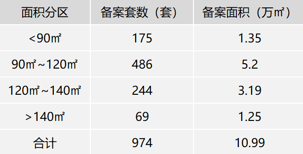 根据公告显示,2024年11月泸州市主城区新建商品住房备案套数合计为974套,备案面积合计为10.99万㎡。其中,小于90㎡的户型备案175套,面积1.35万㎡;90㎡-120㎡的户型备案486套,面积5.2万㎡;120㎡-140㎡的户型备案244套,面积3.19万㎡;大于140㎡的户型备案69套,面积1.25万㎡。