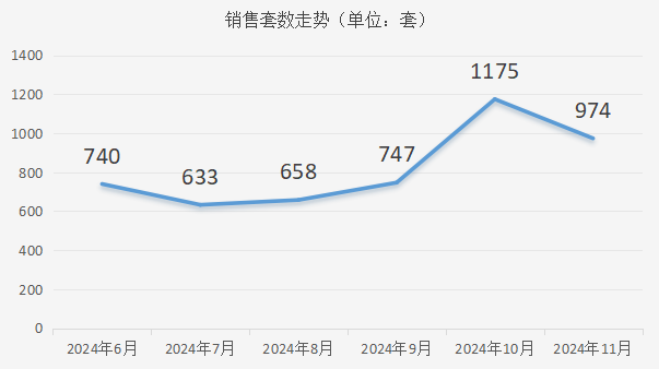 与上月(2024年10月)比较,成交套数减少了201套,成交面积减少了1.97万平方米。
