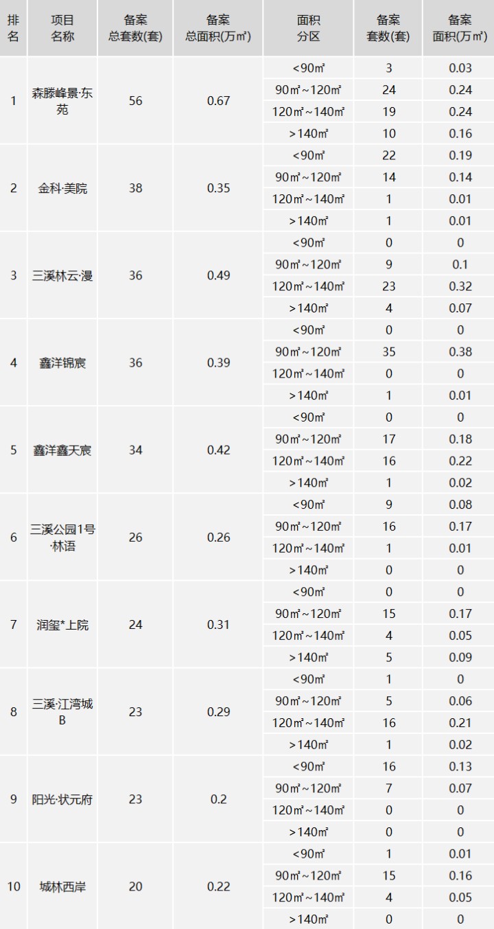 根据公告显示,2025年4月泸州市主城区新建商品住房销售前10的项目,合计备案316套,备案面积3.6万平方米,前3名分别是森滕峰景·东苑、金科·美院、三溪林云·漫。来看看哪10个楼盘卖的好。