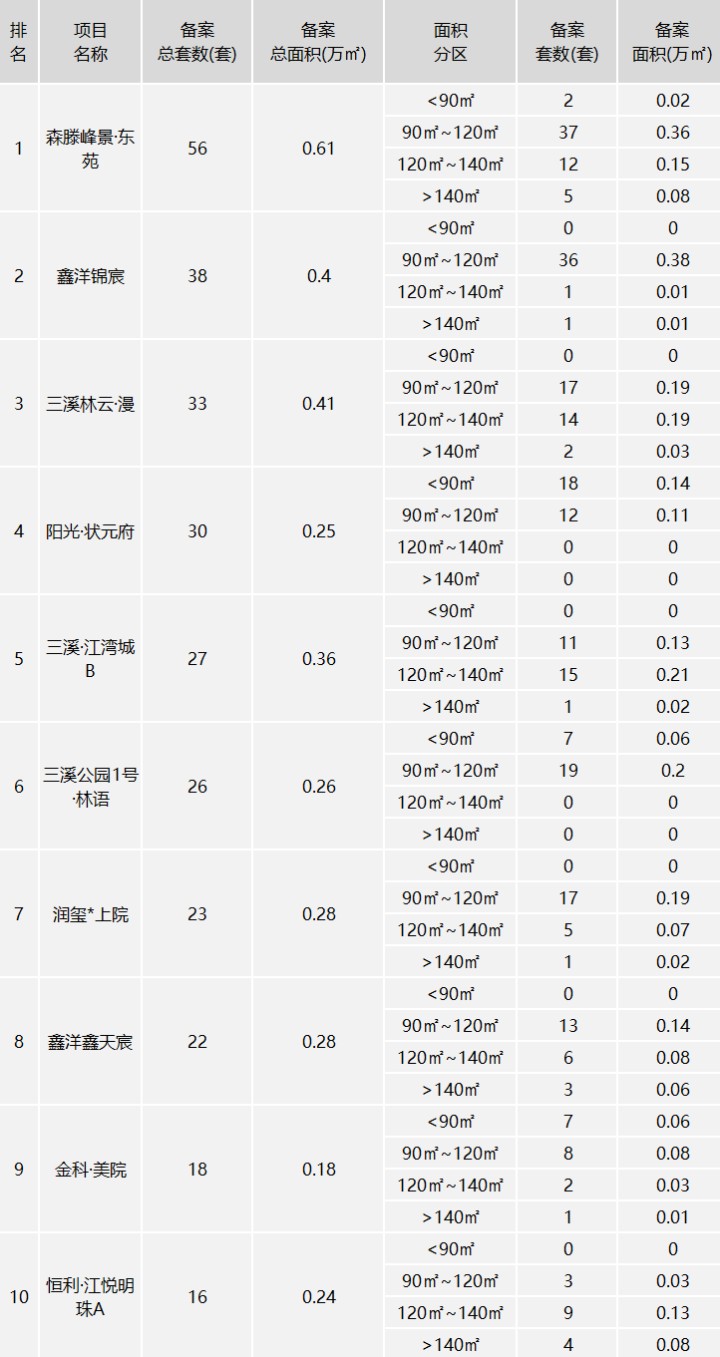 根据公告显示,2025年5月泸州市主城区新建商品住房销售前10的项目,合计备案289套,备案面积3.27万平方米,前3名分别是森滕峰景·东苑、鑫洋锦宸、三溪林云·漫。来看看哪10个楼盘卖的好。
