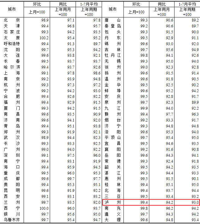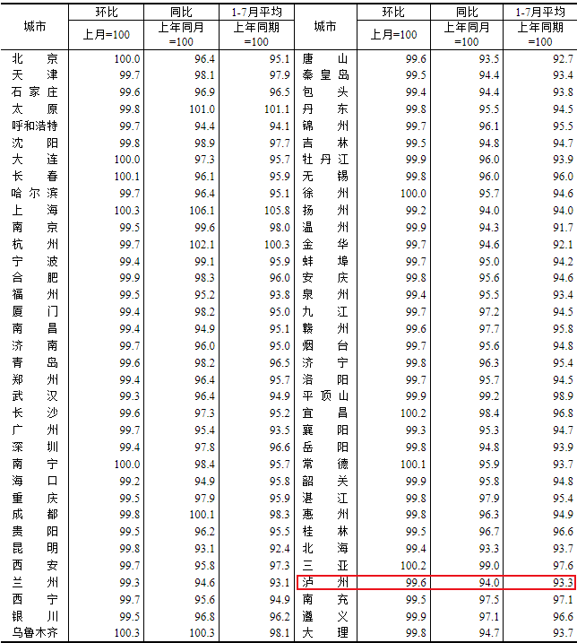 2025年8月15日,国家统计局发布了2025年7月份70个大中城市商品住宅销售价格变动情况。来看看泸州房价有什么变化吧!