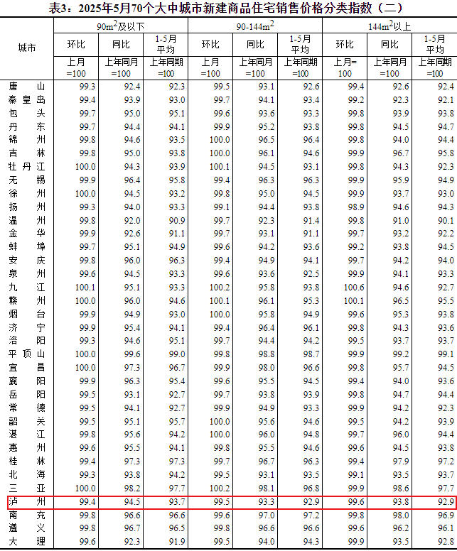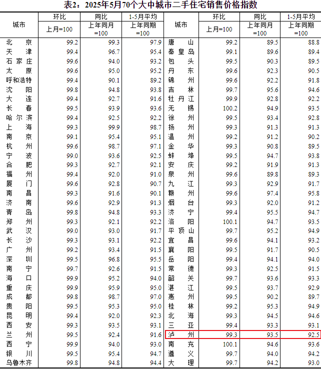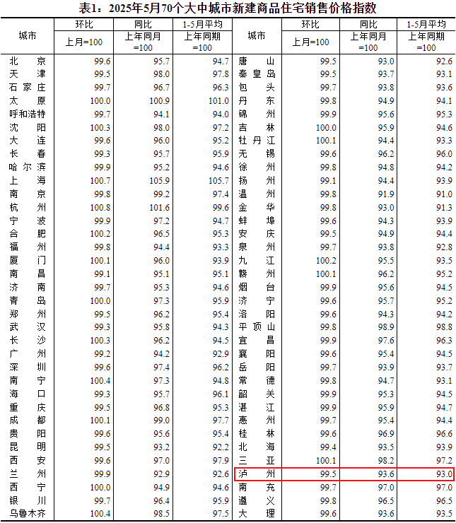 2025年6月16日,国家统计局发布了2025年5月份70个大中城市商品住宅销售价格变动情况。来看看泸州房价有什么变化吧!